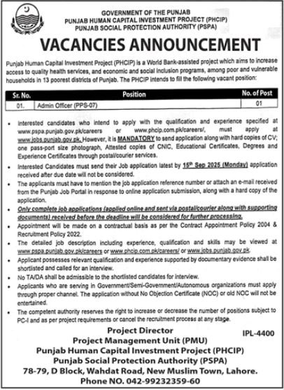 Punjab Social Protection Authority PSPA announced new jobs for the position of Admin Officer. These jobs are related to Management category and Government jobs. The minimum qualification required for this job is Bachelor, Master.