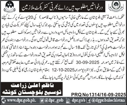 The job is located in Quetta and it is necessary for candidate to read mentioned requirements for available vacancies. Other newspaper published this job ad on 17 September, 2025. Last date to apply this job is 12 October, 2025