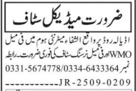 Al Shifa General Hospital announced new jobs for the position of Wmo, Woman Medical Officer, Doctor, Nursing Staff, Nurse. These jobs are related to Medical category and Government jobs. The minimum qualification required for this job is Intermediate, Bachelor, MBBS.