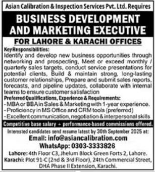 Asian Calibration & Inspection Services Pvt Ltd announced new jobs for the position of Business Development Marketing Executive. These jobs are related to Management category and Government jobs. The minimum qualification required for this job is Bachelor, Master, MS, BS.