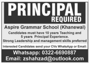 Aspire Grammar School announced new jobs for the position of Principal. These jobs are related to Education category and Government jobs. The minimum qualification required for this job is Master.