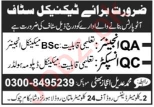 Auto Parts Manufacturing Company announced new jobs for the position of Qa Engineer, Qc Inspector. These jobs are related to Engineering category and Government jobs. The minimum qualification required for this job is Primary, Middle, Matric.