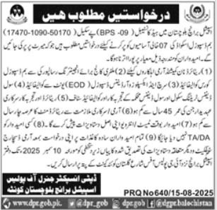 Balochistan Police Quetta Job 2025