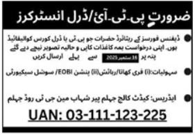 Cadet College Jhelum announced new jobs for the position of Pti, Drill Instructor. These jobs are related to Management category and Government jobs. The minimum qualification required for this job is Matric, Intermediate.