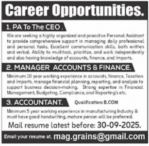 Private Company announced new jobs for the position of Pay To The Ceo, Manager Accounts Finance, Accountant. These jobs are related to Management category and Government jobs. The minimum qualification required for this job is Bachelor, Master, Others.