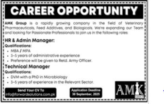 AMK Group announced new jobs for the position of Admin Hr Manager, Technical Manager. These jobs are related to Management category and Government jobs. The minimum qualification required for this job is Phd, MBA, Others.