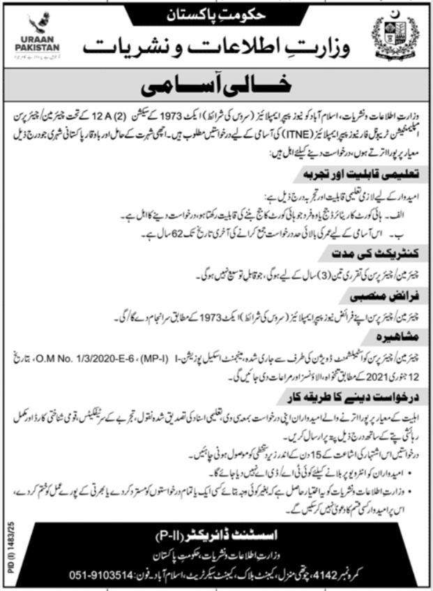 Ministry of Information and Broadcasting announced new jobs for the position of Chairman, Chairperson. These jobs are related to Management category and Government jobs. The minimum qualification required for this job is Bachelor, Master, LLb, Others.