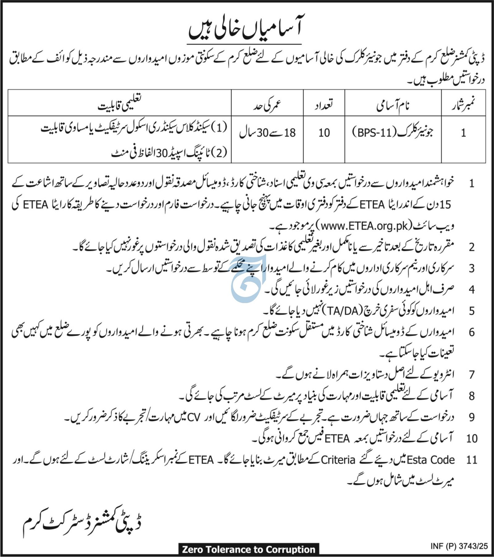 The job is located in Kurram and it is necessary for candidate to read mentioned requirements for available vacancies. Aaj newspaper published this job ad on 31 August, 2025. Last date to apply this job is 15 September, 2025