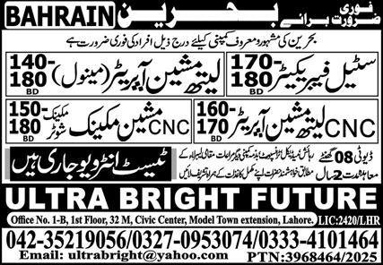 The job is located in Bahrain and it is necessary for candidate to read mentioned requirements for available vacancies. Express newspaper published this job ad on 10 September, 2025. Last date to apply this job is 17 September, 2025