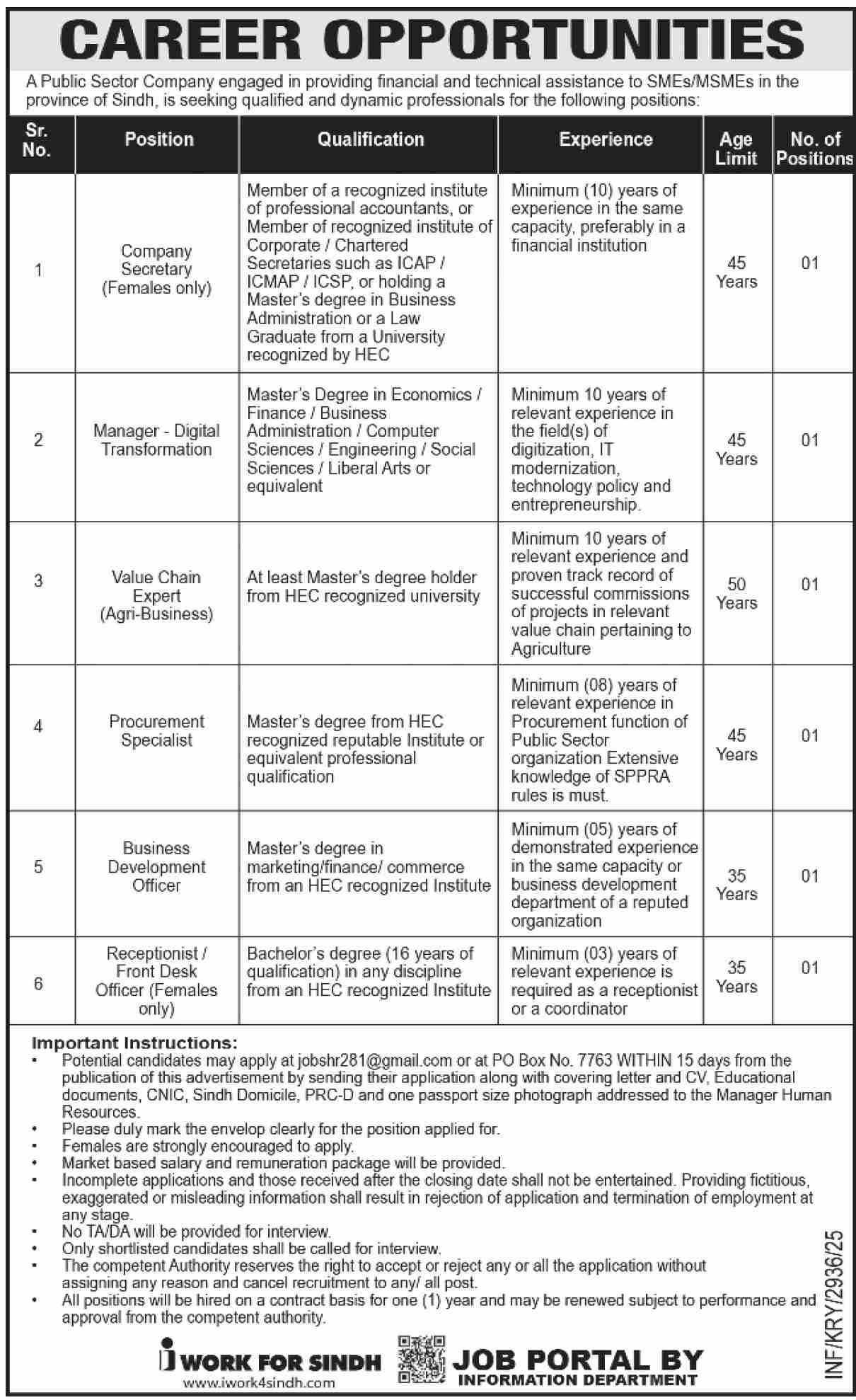 Public Sector Company announced new jobs for the position of Company Secretary, Manager, Manager Digital Transformation, Value Chain Expert, Procurement Specialist, Business Development Officer, Receptionist, Front Desk Officer. These jobs are related to Management category and Government jobs. The minimum qualification required for this job is Bachelor, Master, Others.