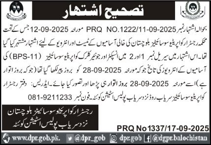 The job is located in Quetta and it is necessary for candidate to read mentioned requirements for available vacancies. Other newspaper published this job ad on 18 September, 2025. Last date to apply this job is 28 September, 2025