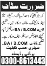 Courier Company announced new jobs for the position of Sales Staff, Marketing Staff. These jobs are related to Marketing category and Government jobs. The minimum qualification required for this job is Intermediate, Bachelor.