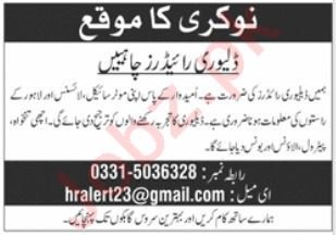 Private Company announced new jobs for the position of Delivery Riders. These jobs are related to Management category and Government jobs. The minimum qualification required for this job is Matric.
