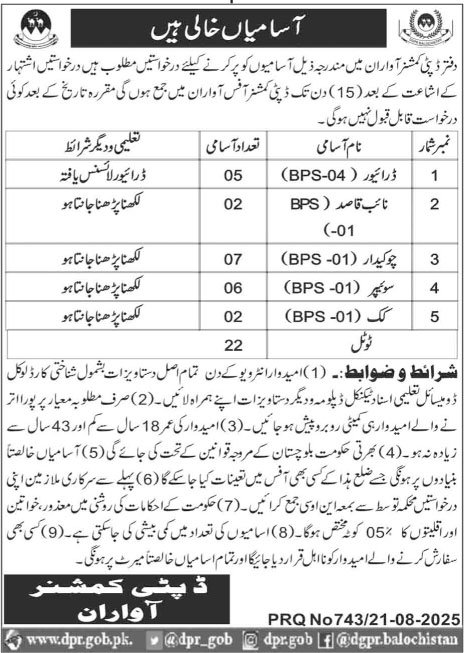 The job is located in Awaran and it is necessary for candidate to read mentioned requirements for available vacancies. Other newspaper published this job ad on 22 August, 2025. Last date to apply this job is 06 September, 2025