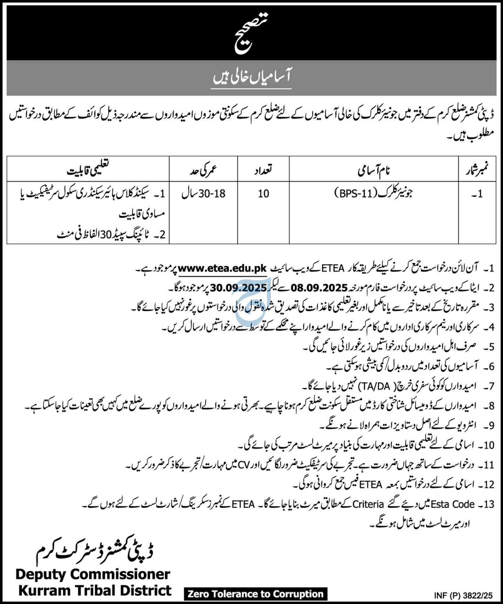 The job is located in Kurram and it is necessary for candidate to read mentioned requirements for available vacancies. Aaj newspaper published this job ad on 10 September, 2025. Last date to apply this job is 30 September, 2025