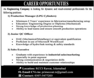 Engineering Company announced new jobs for the position of Production Manager, Qc Officer, Sales Executive. These jobs are related to Management category and Government jobs. The minimum qualification required for this job is Intermediate, Bachelor, DAE.