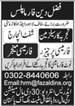 Fazal Din Pharma Plus Pvt Ltd announced new jobs for the position of Salesman, Shiftman, Pharmacy Purchaser, Pharmacy Manager. These jobs are related to Management category and Government jobs. The minimum qualification required for this job is Intermediate, Bachelor, BS.