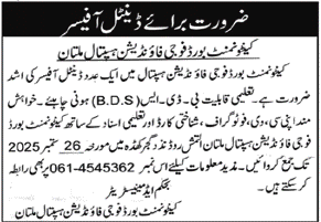 Fouji Foundation Hospital announced new jobs for the position of Dental Officer. These jobs are related to Medical category and Government jobs. The minimum qualification required for this job is BDS.