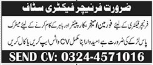 Furniture Factory announced new jobs for the position of Foreman, Manager, Carpenter. These jobs are related to Engineering category and Government jobs. The minimum qualification required for this job is Matric, Intermediate, Bachelor.
