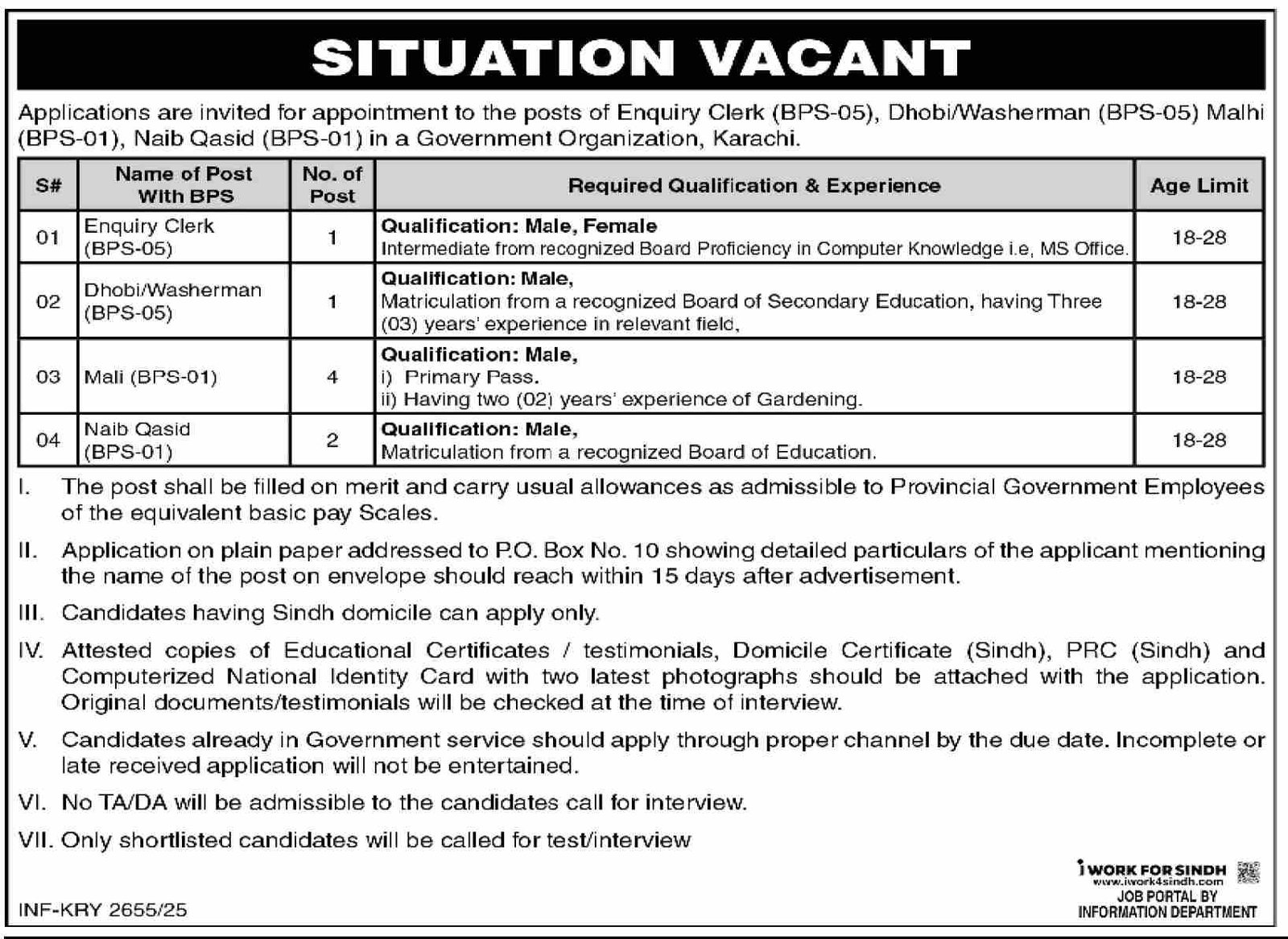 Government Organization announced new jobs for the position of Enquiry Clerk, Dhobi, Washman, Mali, Naib Qasid. These jobs are related to Management category and Government jobs. The minimum qualification required for this job is Bachelor, Master, MS, BS.