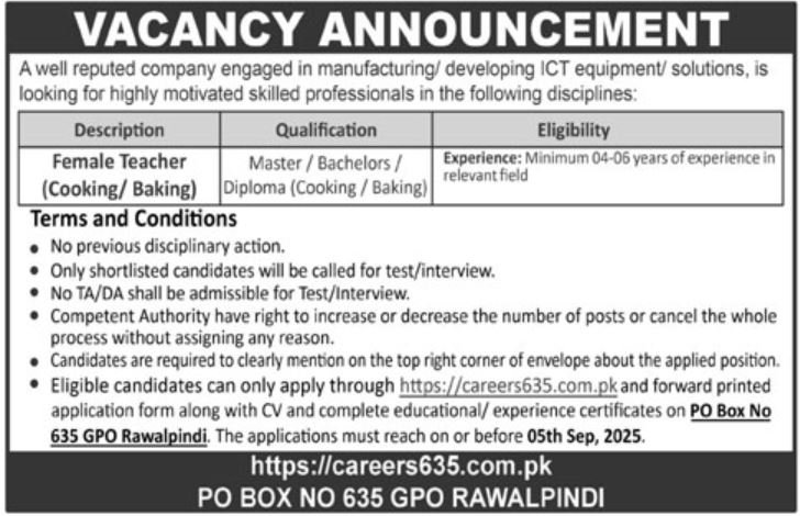 The job is located in Rawalpindi and it is necessary for candidate to read mentioned requirements for available vacancies. Aaj newspaper published this job ad on 22 August, 2025. Last date to apply this job is 05 September, 2025