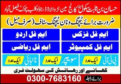 Hassan Bin Sabit School & College announced new jobs for the position of Teacher, Physics Teacher, Urdu Teacher, Computer Teacher, Mathematics Teacher, Pti, Sweeper, Nanbai. These jobs are related to Education category and Government jobs. The minimum qualification required for this job is Primary, Middle, Mphil.