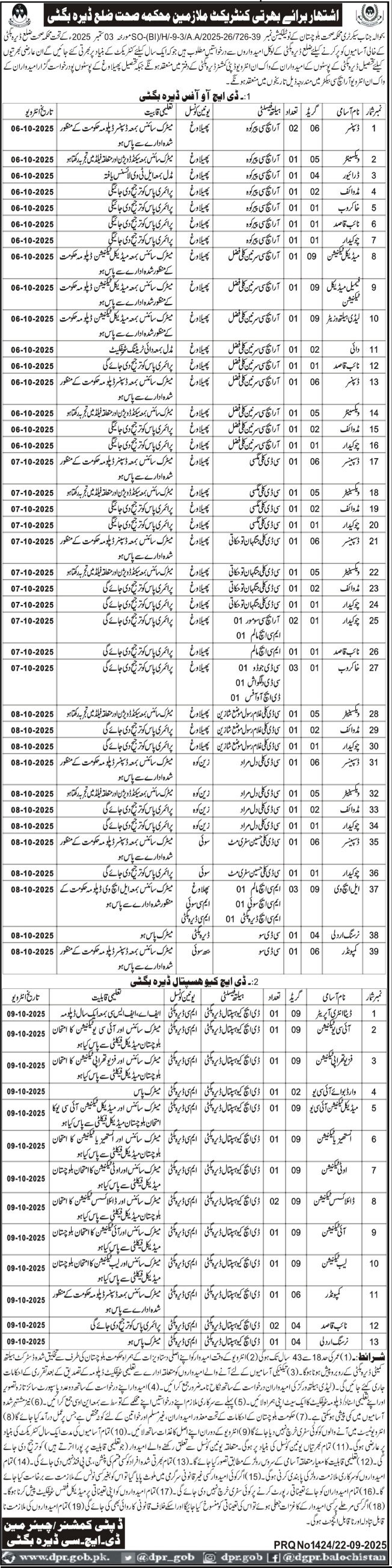 The job is located in Dera Bugti and it is necessary for candidate to read mentioned requirements for available vacancies. Other newspaper published this job ad on 23 September, 2025. Last date to apply this job is 09 October, 2025