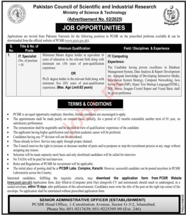Ministry of Science and Technology MOST announced new jobs for the position of It Specialist. These jobs are related to Management category and Government jobs. The minimum qualification required for this job is Master, Phd.