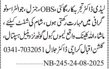 The job is located in Karachi and it is necessary for candidate to read mentioned requirements for available vacancies. Jang newspaper published this job ad on 25 August, 2025. Last date to apply this job is 09 September, 2025