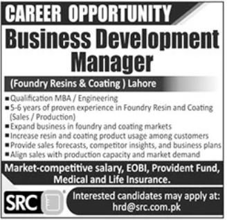 SRC Pvt Limited announced new jobs for the position of Business Development Manager. These jobs are related to Management category and Government jobs. The minimum qualification required for this job is MBA.