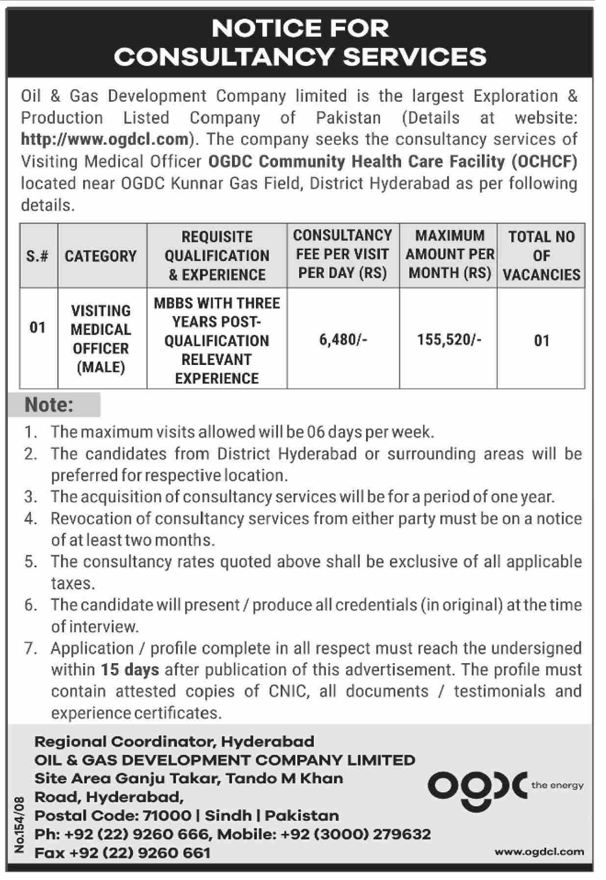 Oil & Gas Development Company Limited OGDCL announced new jobs for the position of Visiting Medical Officer. These jobs are related to Medical category and Government jobs. The minimum qualification required for this job is MBBS.