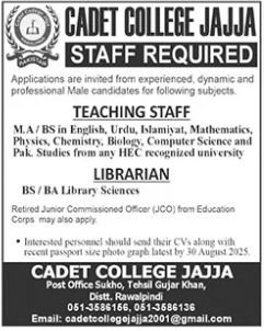 Cadet College announced new jobs for the position of Teaching Staff, Librarian. These jobs are related to Education category and Government jobs. The minimum qualification required for this job is BA, MA, M.sc, BS.