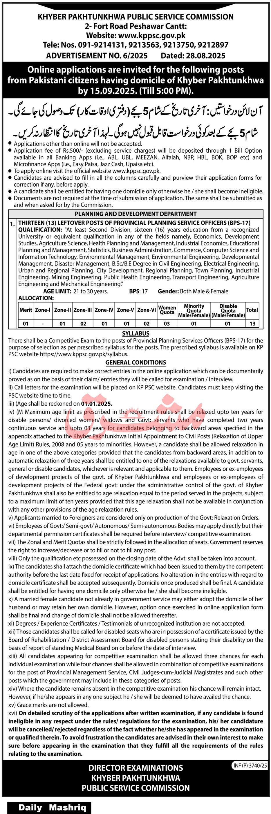 Khyber Pakhtunkhwa Public Service Commission KPPSC announced new jobs for the position of Provincial Planning Service Officer. These jobs are related to Management category and Government jobs. The minimum qualification required for this job is Bachelor, Master.