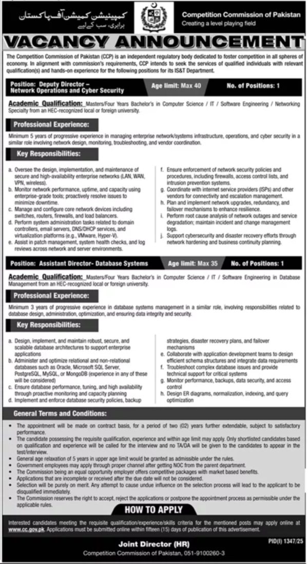 Competition Commission of Pakistan announced new jobs for the position of Deputy Director. These jobs are related to Management category and Government jobs. The minimum qualification required for this job is Bachelor, Master.