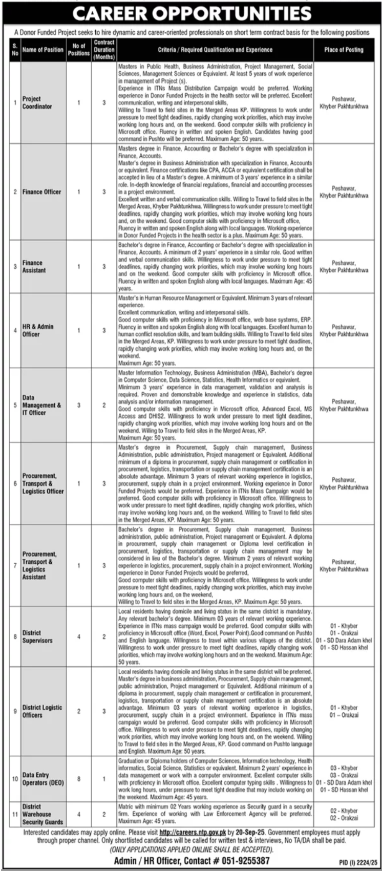Donor Funded Project announced new jobs for the position of Project Coordinator, Finance Officer, Finance Assistant, Hr Admin Officer, Data Management It Officer, Procurement Transport Logistics Officer, Procurement Transport Logistics Assistant, District Supervisor, District Logistic Officer, Data Entry Operator, District Warehouse Security Guard. These jobs are related to Management category and Government jobs. The minimum qualification required for this job is Intermediate, Bachelor, Master, MS, BS.