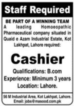 Dr Masood Homoeopathic Pharmaceuticals announced new jobs for the position of Cashier. These jobs are related to Management category and Government jobs. The minimum qualification required for this job is B.com.