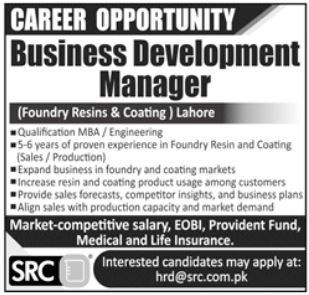 SRC Pvt Limited announced new jobs for the position of Business Development Manager. These jobs are related to Management category and Government jobs. The minimum qualification required for this job is MBA.