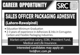 SRC Pvt Limited announced new jobs for the position of Sales Officer Packaging Adhesive. These jobs are related to Management category and Government jobs. The minimum qualification required for this job is Bachelor, Master.