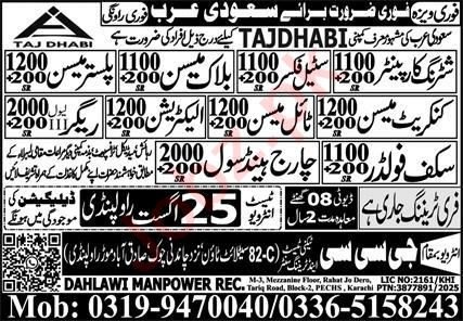 The job is located in Saudi Arabia and it is necessary for candidate to read mentioned requirements for available vacancies. Express newspaper published this job ad on 17 August, 2025. Last date to apply this job is 25 August, 2025