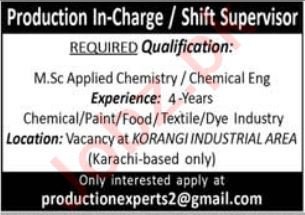 Private Industry announced new jobs for the position of Production Incharge, Shift Supervisor. These jobs are related to Management category and Government jobs. The minimum qualification required for this job is Master, M.sc.