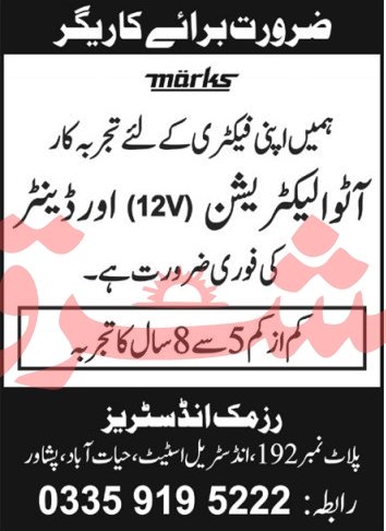 Razmak Industries announced new jobs for the position of Auto Electrician, Denter. These jobs are related to Management category and Government jobs. The minimum qualification required for this job is Primary, Middle, Matric.