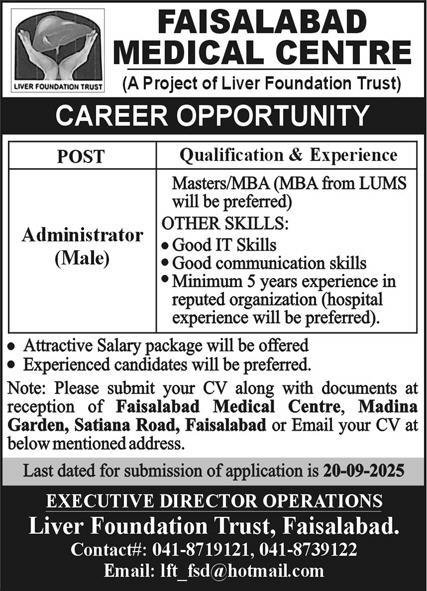 Liver Foundation Trust LFT announced new jobs for the position of Administrator. These jobs are related to Management category and Government jobs. The minimum qualification required for this job is Master, MBA, Others.