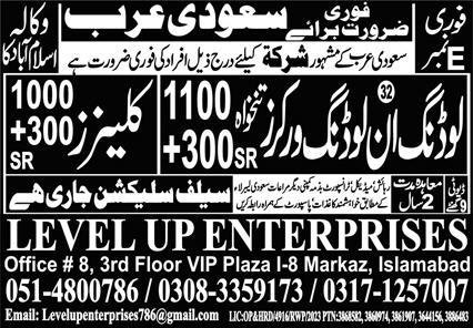 Level Up Enterprises announced new jobs for the position of Loading Unloading Worker, Cleaner. These jobs are related to Labor category and Government jobs. The minimum qualification required for this job is Middle.
