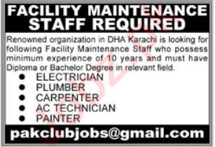 Private Company announced new jobs for the position of Electrician, Plumber, Carpenter, Ac Technician, Painter. These jobs are related to Engineering category and Government jobs. The minimum qualification required for this job is Matric, Intermediate, DAE.
