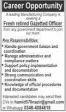 Manufacturing Company announced new jobs for the position of Retired Gazetted Officer. These jobs are related to Management category and Government jobs. The minimum qualification required for this job is Bachelor, BS.