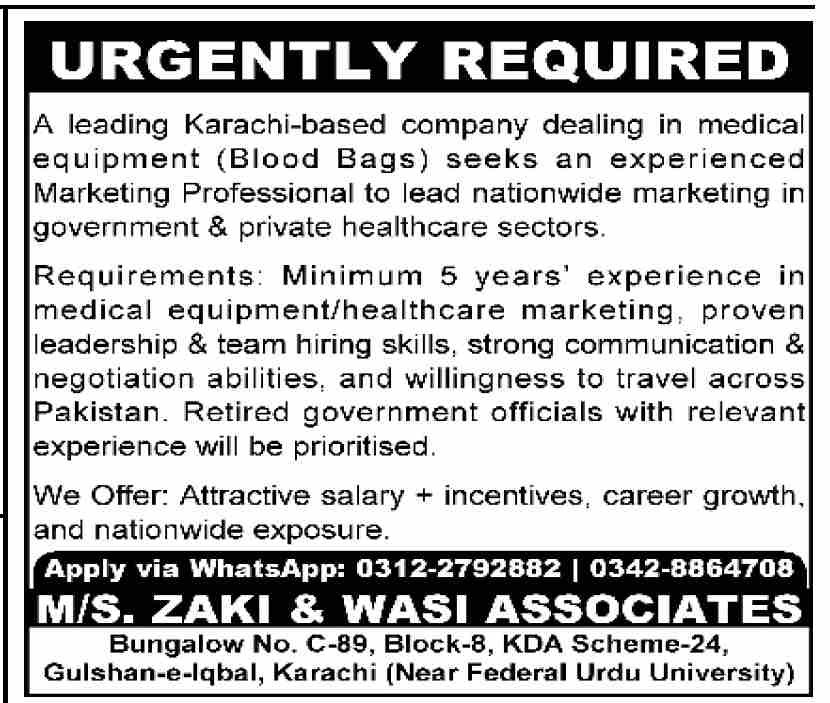 MS Zaki & Wasi Associates announced new jobs for the position of Marketing Professional. These jobs are related to Marketing category and Government jobs. The minimum qualification required for this job is Bachelor, Master.