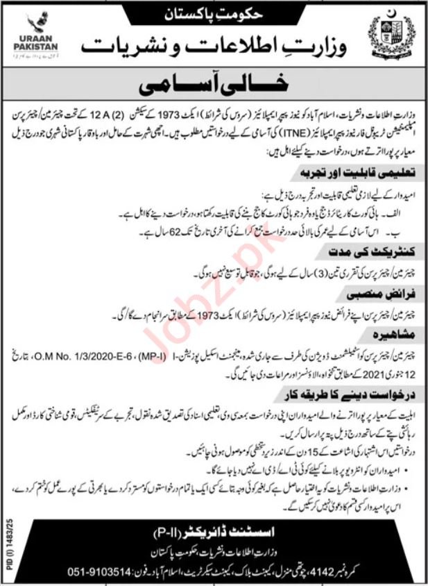 Ministry of Information and Broadcasting announced new jobs for the position of Chairman, Chair Person Implementation Tribunal For News Paper Employees. These jobs are related to IT category and Government jobs. The minimum qualification required for this job is Bachelor, Master, MS, BS.