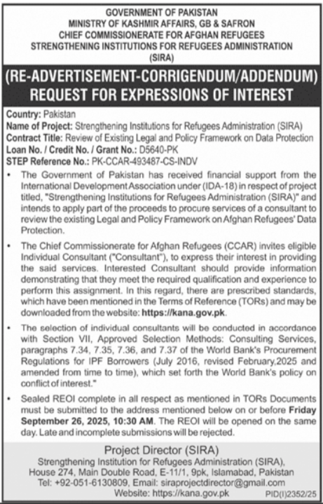 Ministry of Kashmir Affairs & Gilgit Baltistan announced new jobs for the position of Consultant, Individual Consultant. These jobs are related to Consultant category and Government jobs. The minimum qualification required for this job is Bachelor, Master.
