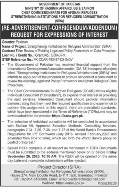 Ministry of Kashmir Affairs & Gilgit Baltistan announced new jobs for the position of Consultant. These jobs are related to Consultant category and Government jobs. The minimum qualification required for this job is Bachelor, Master, MS, BS.