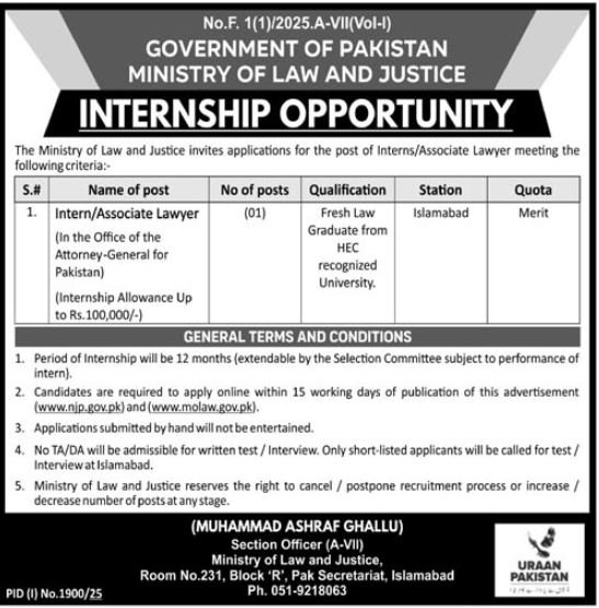 Ministry of Law & Justice announced new jobs for the position of Intern, Associate Lawyer, Internship, Internship Program. These jobs are related to Legal category and Government jobs. The minimum qualification required for this job is Bachelor.